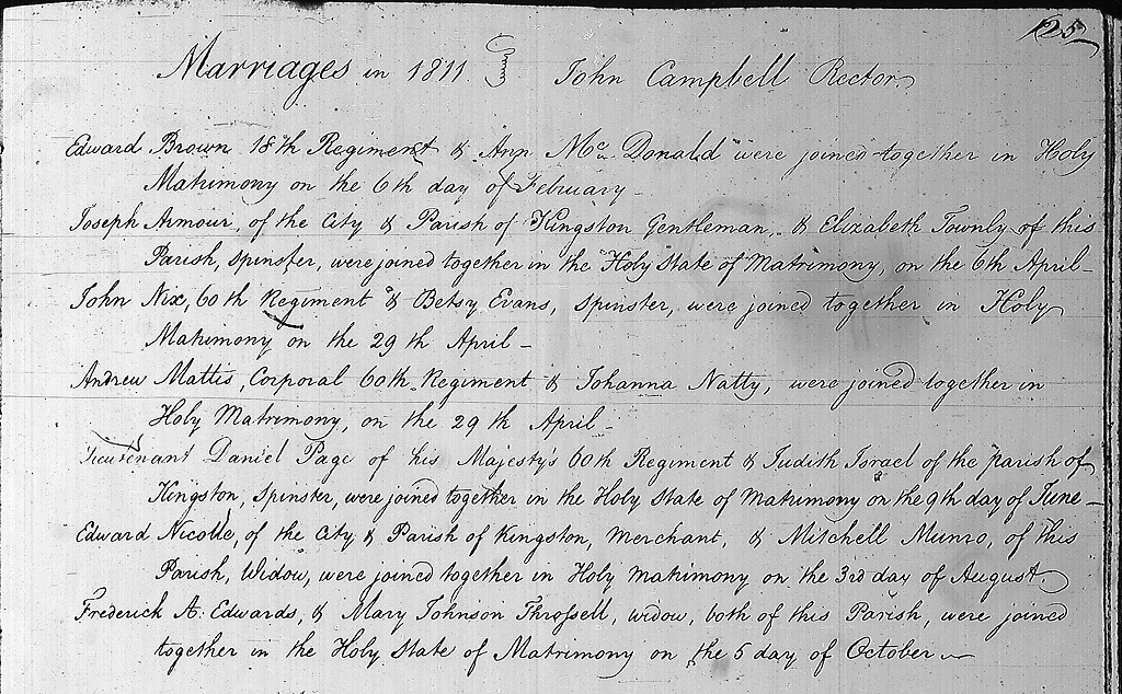 Marriage Record of Daniel Page & Judith Israel, 1811